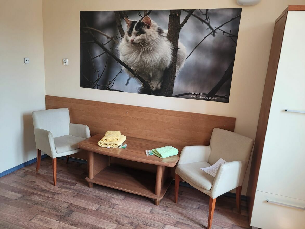 • W pełni wyposażony: łóżka, szafy, lampki, tekstylia